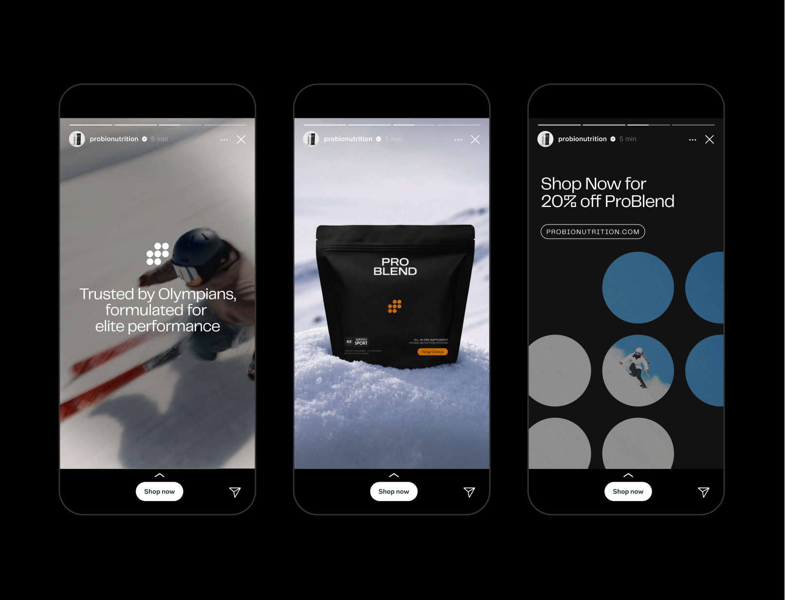 Marketed towards professional sports teams and high intensity athletes, ProBio ProBlend is the newest all-in-one supplement drink on the market, made to support elite performance and recovery. Our design team works to support the brands visual systems across all channels, from updating and managing their e-commerce site, to paid and organic social ads.